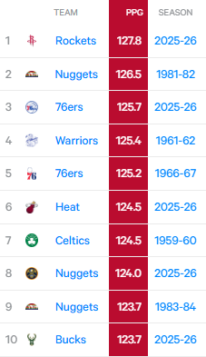 Teniendo todo esto en cuenta, no es extraño que los Houston Rockets estén en ritmo de ser el equipo de mayor volumen anotador de la historia.
