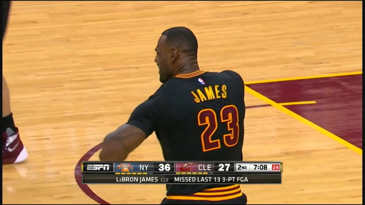 Tras fallar un triple contra New York Knicks, James destrozó literalmente las mangas de su camiseta para sentirse más cómodo y liberado. Los Cavaliers utilizaron en el partido el nuevo uniforme negro presentado como parte de las celebraciones del 45º aniversario de la franquicia.