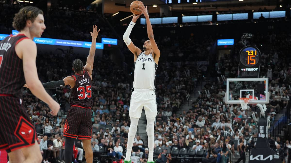 Lo primero fue la anotación, pues en apenas cinco minutos y 5 segundos Wemby sumaba ya 10 tantos en su casillero, pero, con solo 3 rebotes, era difícil imaginar que los 10 rebotes tardarían poco más en llegar. No obstante, el galo sumó otros dos antes de irse al banquillo en el ecuador del primer cuarto, y en cuando volvió a pista para su segunda rotación se hizo aún más gigante en la pintura. Lo que, ante unos Bulls que no eran capaces de anotar, le permitió llegar a los dobles dígitos a velocidad exprés.