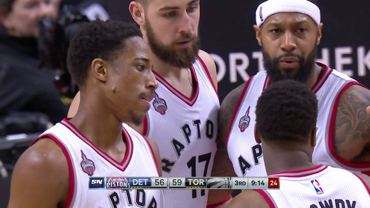Los de Canadá desecharon una renta de veinte puntos en el último periodo. DeMar DeRozan lideró la ofensiva con 29 tantos. Kyle Lowry añadió 18, y desde la segunda unidad Bismack Biyombo aportó un doble-doble (12 puntos y 13 rebotes).
