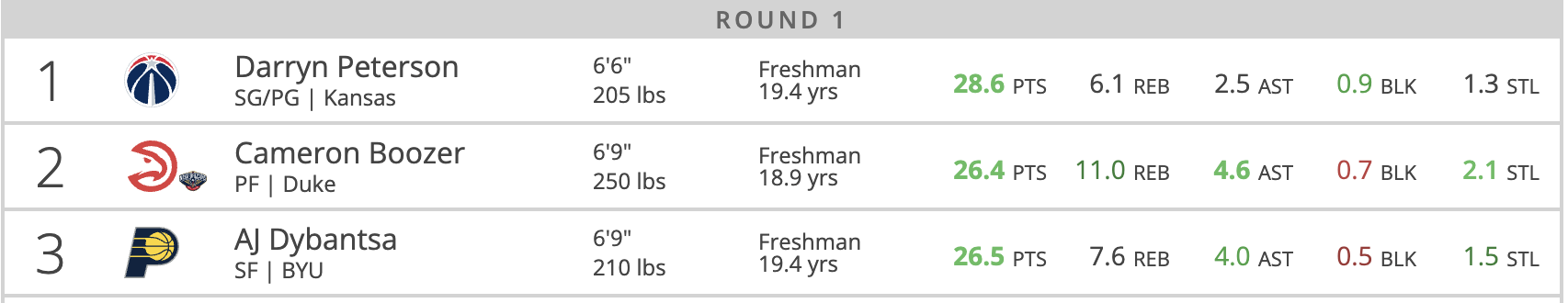 En cualquier caso, los portales especializados en mock drafts deben prefijar un orden, y en la mayoría –aquí el de Nbadraft– predomina el establecido en el párrafo de antes: